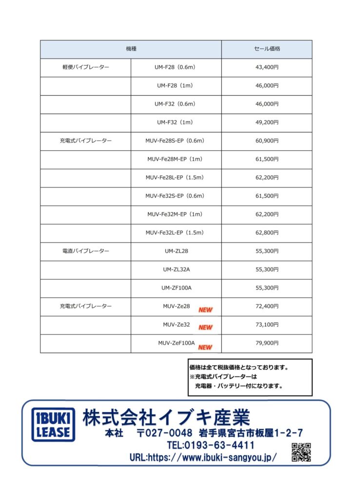 この度、弊社では「軽便・電直バイブレーターセール」を実施いたします